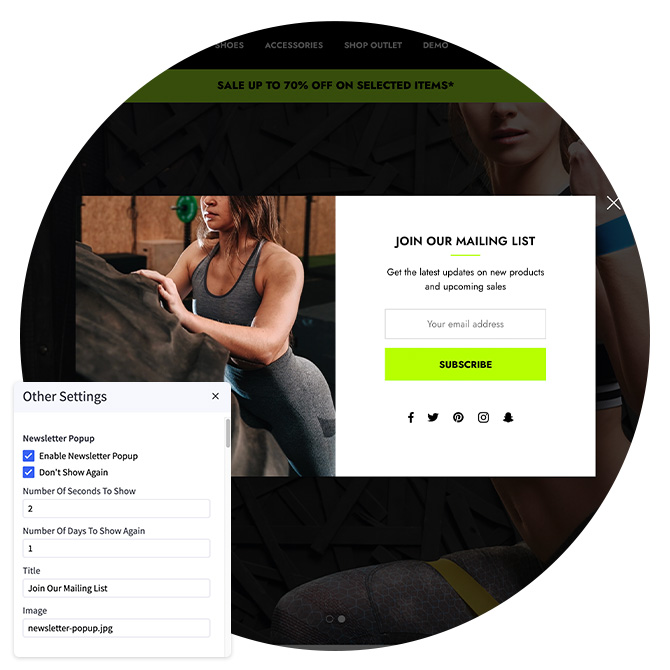 Popup Newsletter: This add-on for all pages is going to make your guests easily sign up for newsletters once they visit the site. Besides, you can also add in different social media icons or whatever you want your customers to pay attention to.