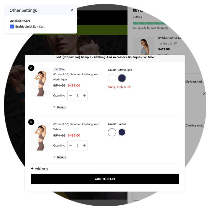 Quick Edit Cart is a great solution which allows your customers to change products directly in the dropdown cart or the side cart, simplify the complicated process of switching to the cart page to add new products or change the other variants. This helps to motivate customers to buy more and more.