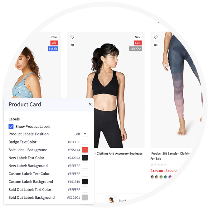 With our new development integrated in the Bigcommerce templates, you can create labels or icons for 'Sale' products or other easily and user-friendly.